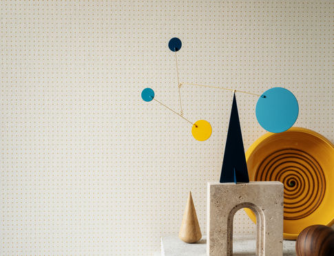 The pattern - dots on a uniform background - is based on the wall paneling with a dot pattern that Le Corbusier designed in 1931. The dots provide a subtle reflection, so that the wall paneling - as Le Corbusier in its architecture - plays with the light.
